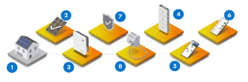 SMA Home Energy Solution is de perfecte combinatie van hoogwaardige toestellen, intelligente besturing en uitstekende ondersteuning en service, alles van één leverancier. Dankzij de modulaire opbouw is het mogelijk om met een basisopstelling te starten. Het systeem is daarna gemakkelijk uit te breiden in functie van de behoeften en het budget van je klant. Opslag, energiemanagement, eMobility en verwarming integreer je naadloos van bij de start of later.