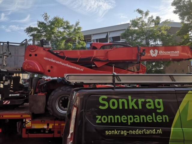 Op het dak van het restaurant plaatsten wij 40 Panelen van JA Solar Mono Full Black Percium met een GoodWe GW12KN-DT 3 fase omvormer. Best wel een precaire klus, omdat het Restaurant midden in Meppel staat aan een drukke weg. Om het dak te kunnen bereiken gebruikten we een verreiker met manbak en moest een deel van de weg afgezet worden.